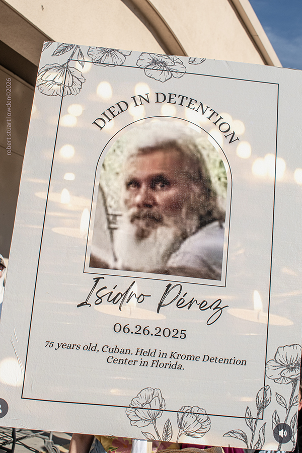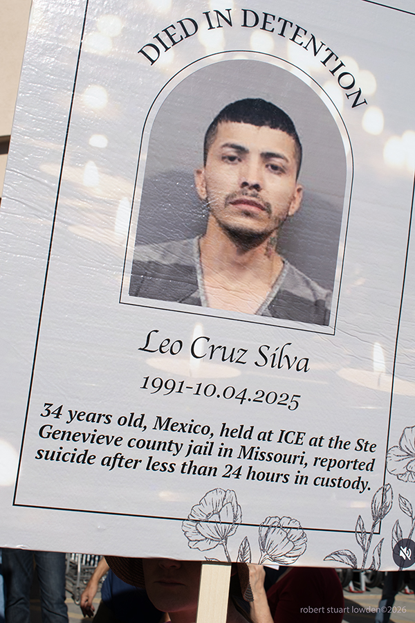 In 2025 32 people expired in Ice Custody. The signs in these photos are basically funeral cards that commemorate these people.
